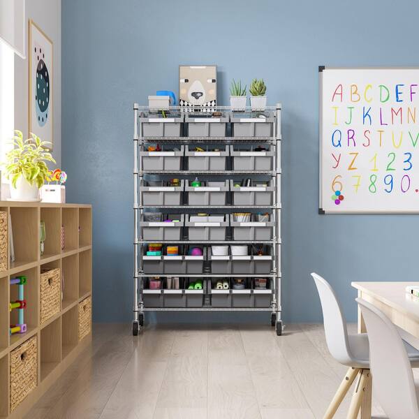 7-Tier Commercial NSF Certified 16-Bin Rack Storage System in Silver/Gray (36 in. W x 56 in. H x 14.25 in. D)