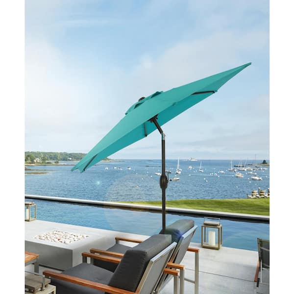 Seymo 7.5 ft. Steel Market Tilt Patio Umbrella in Light Blue Without Base