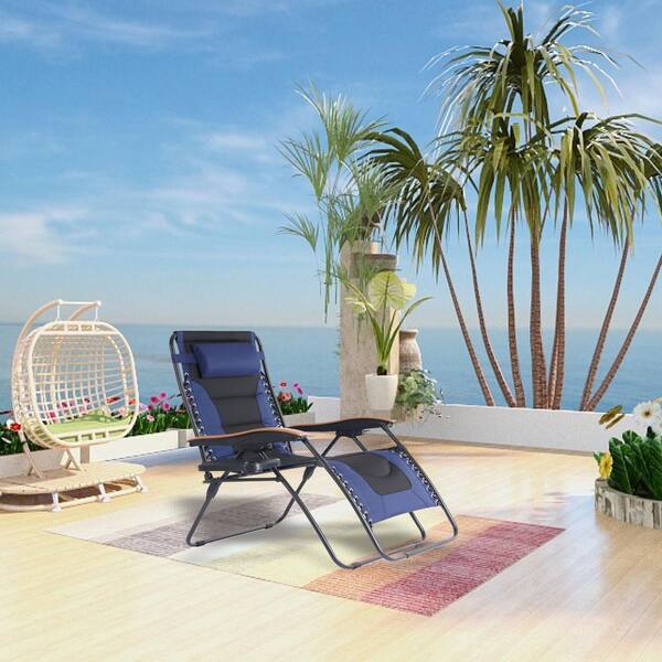 Seymo Dark Blue Folding Padded Zero Gravity Metal Frame Outdoor Lounge Chair