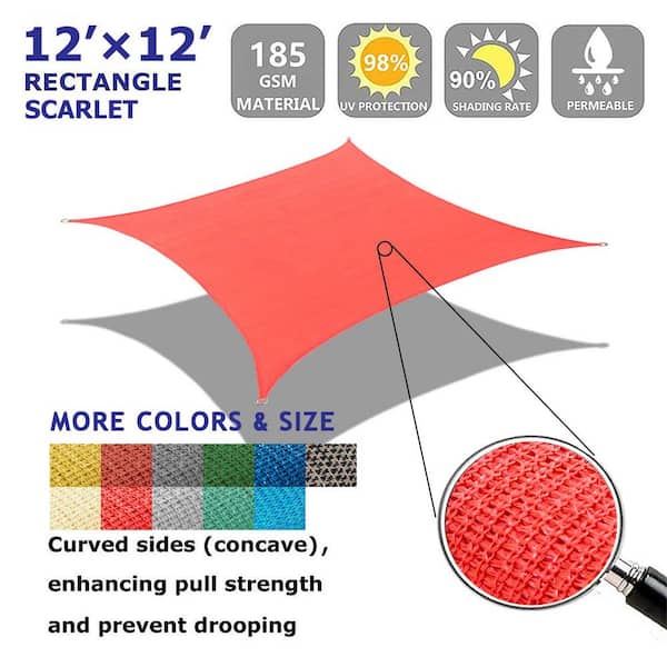 12 ft. x 12 ft. 185 GSM Red Square Sun Shade Sail, for Patio Garden and Swimming Pool