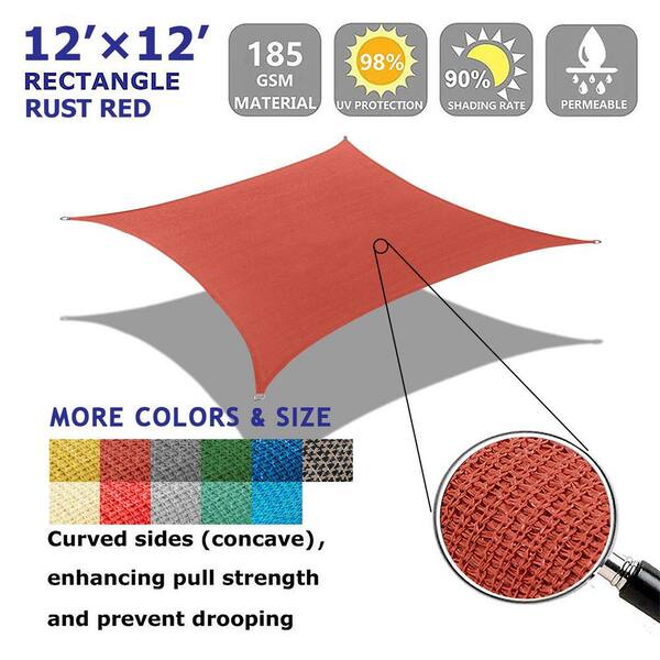 12 ft. x 12 ft. 185 GSM Rust Red Square Sun Shade Sail, for Patio Garden and Swimming Pool