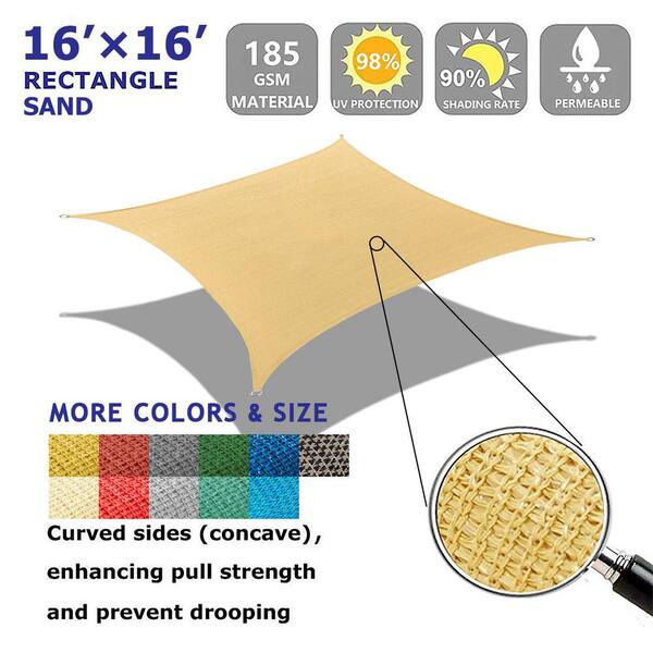 16 ft. x 16 ft. 185 GSM Sand Square Sun Shade Sail, for Patio Garden and Swimming Pool