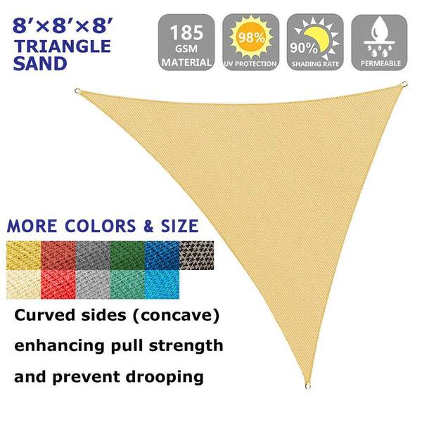 8 ft. x 8 ft. x 8 ft. 185 GSM Sand Equilteral Triangle Sun Shade Sail, for Patio Garden and Swimming Pool