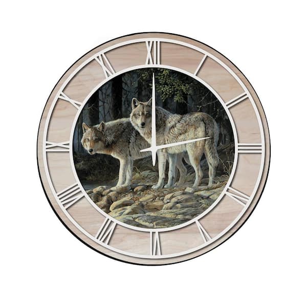 "Shades of Grey" Woodgrain Accent and White Numbers Imaged Wall Clock