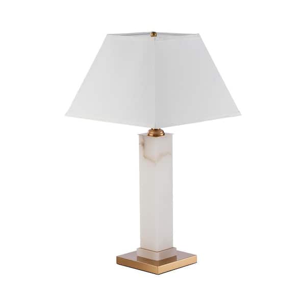 Shamira 30 in. Alabaster White and Gold Metal Table Lamp for Bedroom with Rectangular Fabric Shade