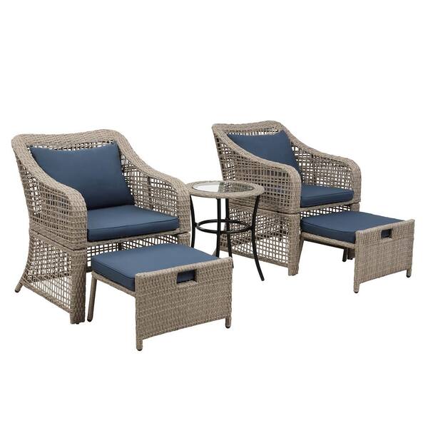 Shanaia Brown 5-Piece Wicker Outdoor Sectional Furniture Set with Blue Cushions