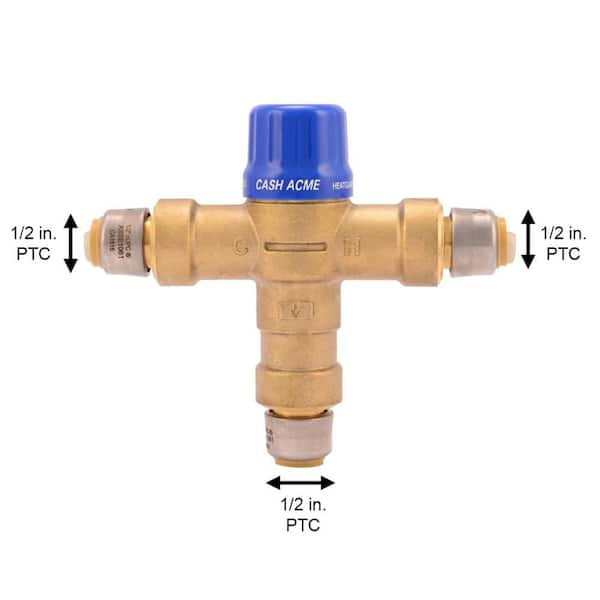 1/2 in. Push-to-Connect Brass Heat Guard 110-D Thermostatic Mixing Valve with Integrated SharkBite Connections