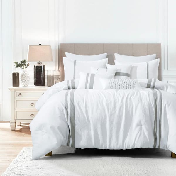 7-Piece White Microfiber Polyester Queen Comforter Set