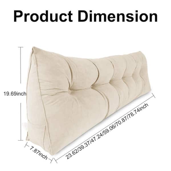 71 in. L x 20 in. W x 8 in. H Beige Plush Reading Pillow Bolster Wedge Backrest and Removable Cover
