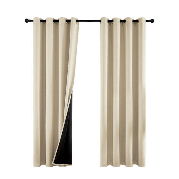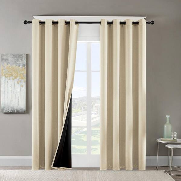 Beige Grommets Thermal Insulated with Coated Lining 52 in. W x 63 in. L Indoor Blackout Curtains (Single Panel)