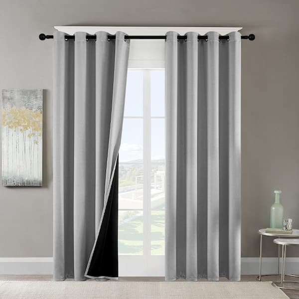 Gray Grommets Thermal Insulated with Coated Lining 52 in. W x 84 in. L Indoor Blackout Curtains (Single Panel)