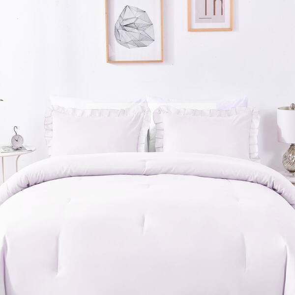 Ruffled White Queen Comforter Bedding Set- 3 Piece All Season, Ultra Soft Polyester- White with Ruffles