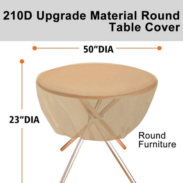 Waterproof Patio Furniture Cover Outdoor Gazebo Rainproof Ottoman/Coffee Table Cover 50 in. Dia x 23 in. H Beige