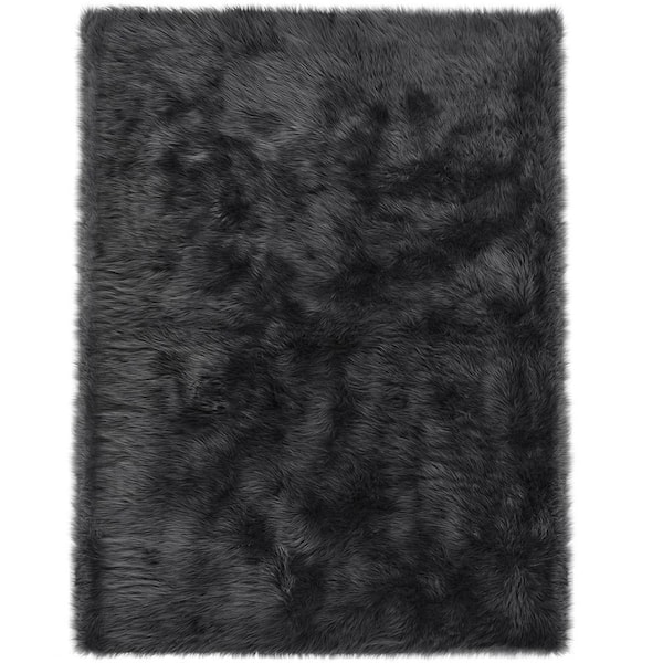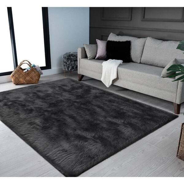 Sheepskin Faux Furry Dark Gray Cozy Rugs 2 ft. x 3 ft. Area Rug