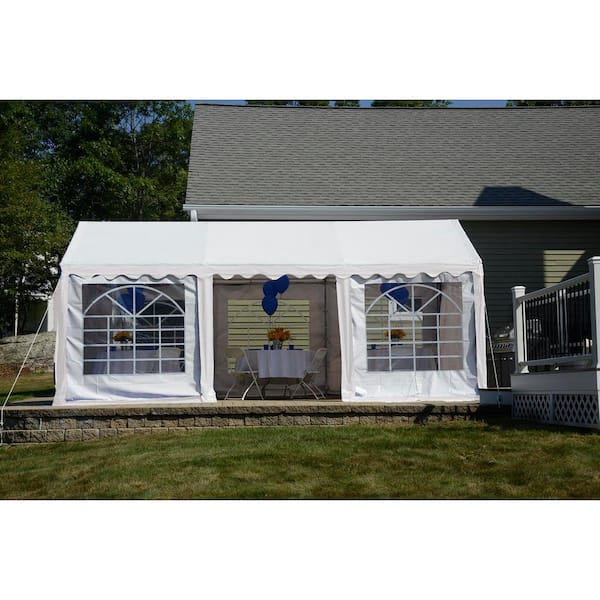 10 ft. W x 20 ft. H Party Tent in White with Enclosure Kit, 100% Waterproof, Fire-Rated Fabric, and Tool-Free Assembly