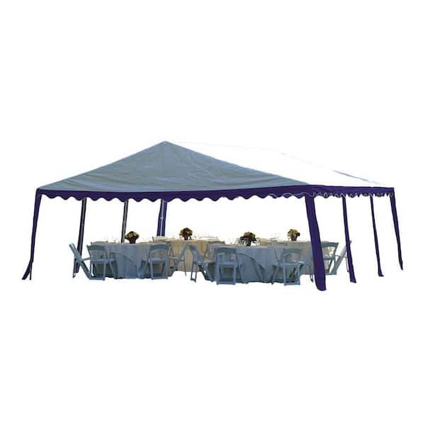 20 ft. W x 20 ft. D Party Tent in Blue/White with Galvanized Steel Frame and 100% Waterproof, Fire-Rated Fabric