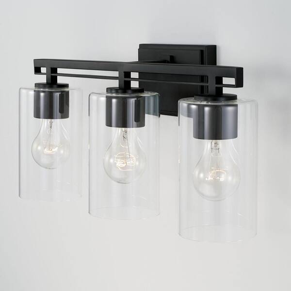 Shelton 18 in. W x 9 in. H x 6 in. E 3-Light Vanity Light in Matte Black