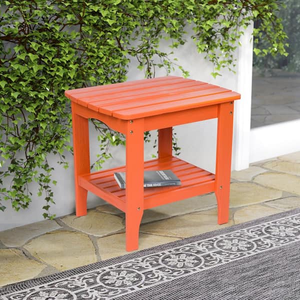 24 in. Long Orange Pumpkin Rectangular Wood Outdoor Side Table