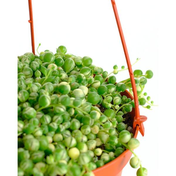 Variegated String of Pearls Hanging Succulent, Senecio Rowleyanus Variegatus, Fully Rooted Live 6 in. Plant with Hanger