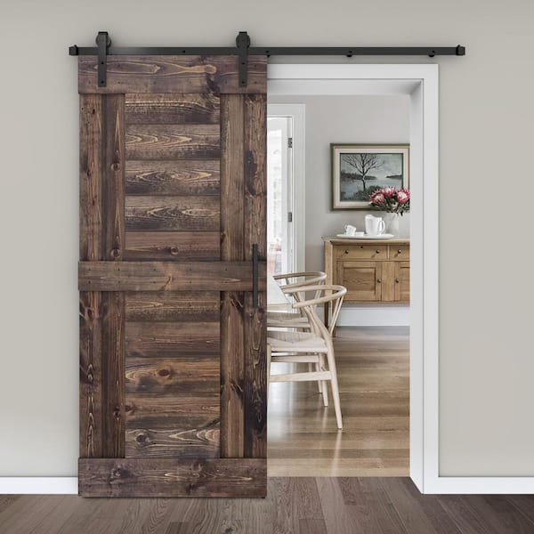 Short Bar 24 in. x 84 in. Dark Brown Finished Pine Wood Sliding Barn Door with Hardware Kit (DIY)