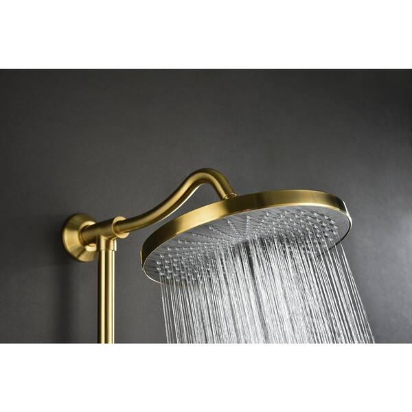ShowerSpas 4-Spray Round High Preasure Adjustable Slide Bar Shower and Soap Dish with Hand Shower in Gold