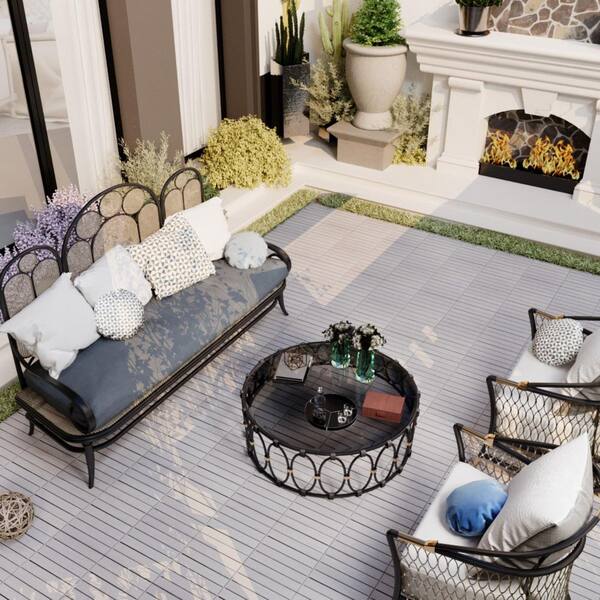 1 ft. x 1 ft. 30-Piecesnterlocking Deck Tiles Striped Pattern, Square Light Gray Acacia Wood Outdoor Flooring