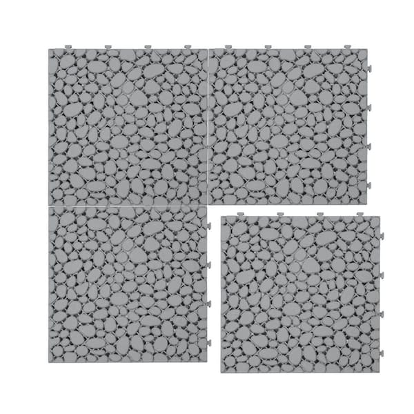1 ft. x 1 ft. Gray Interlocking Deck Tiles PVC Waterproof Outdoor All Weather Anti-Slip Bathroom Shower Pack of 12