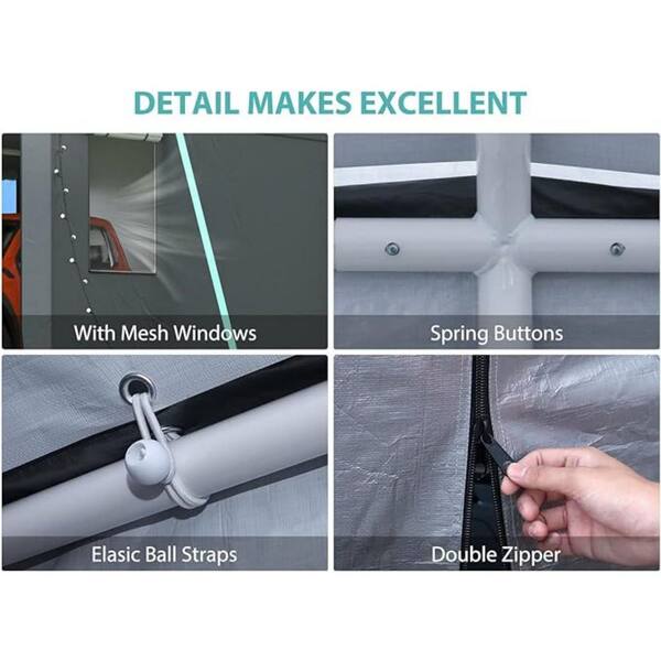 10 ft. x 16 ft. Carport Canopy Portable Car Tent Garage with Roll up Windows and Tarp Cover, Side Walls and Roof