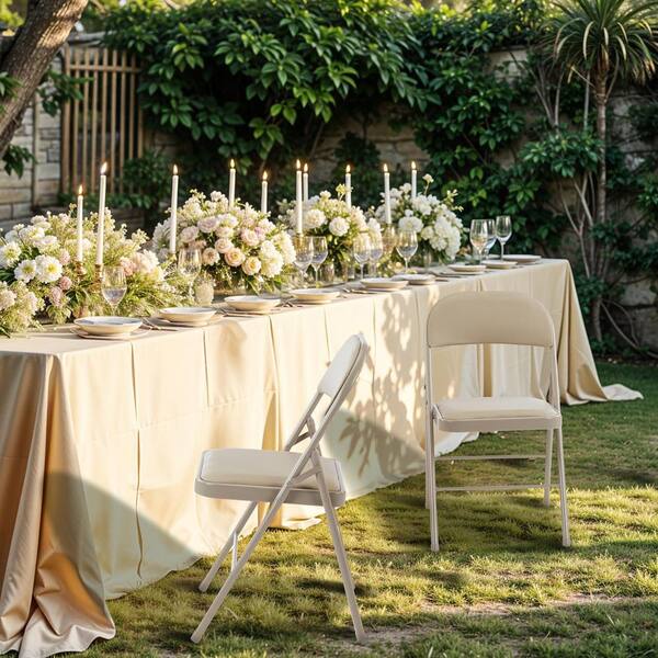 2 Pack Folding Chairs with Leather Padded Cushion Seats and Durable Metal Frame, Comfortable, Foldable, Portable, Kahki