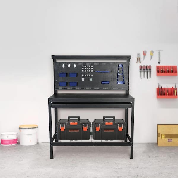 22 in. W x 48 in. D 1-Drawer Tools Cabinet Work Table, Workbench Table with Metal Top, Black