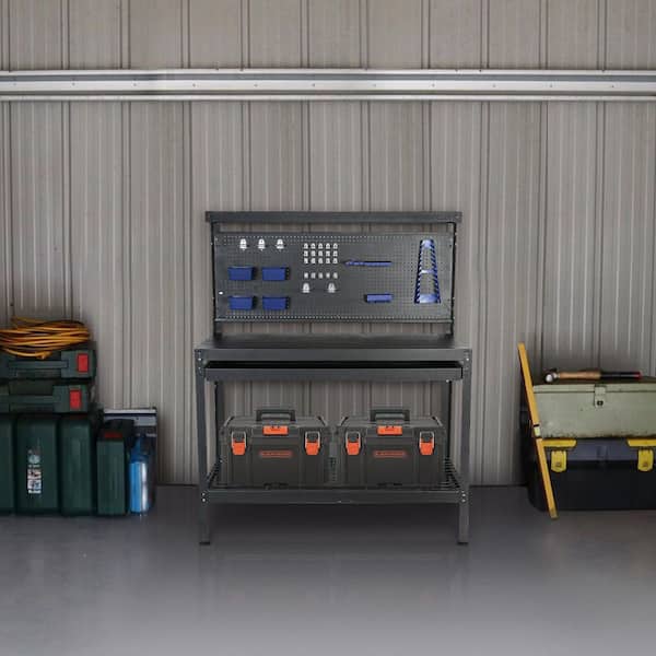 22 in. W x 48 in. D 1-Drawer Tools Cabinet Work Table, Workbench Table with Metal Top, Black