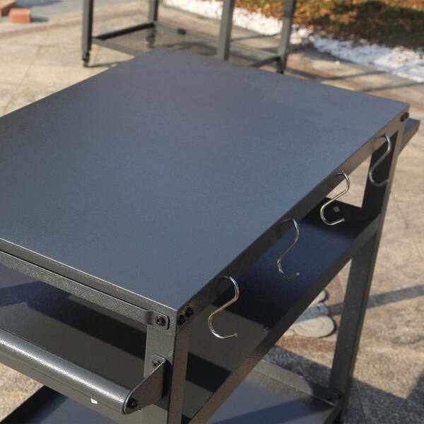 3-Shelf Outdoor Grill Table, Pantry Organizer Grill Cart Outdoor with Wheels, Pizza Oven Table and Food Prep Table, Gray