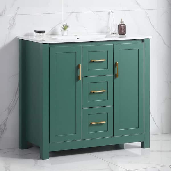 36 in. H Multipurpose Bathroom Decorative Cabinet with Single Sink 2 Doors and 2 Drawers and Dividers Green