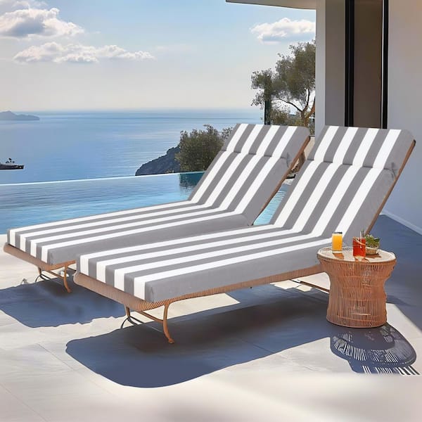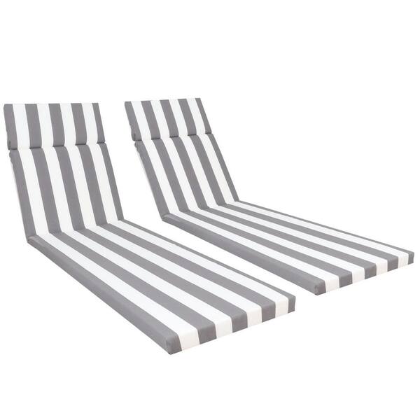 75 in. D x 22.8 in. W x 28.25 in. H Gray/White Stripe Outdoor Lawn Chair Pads with Straps for Pool & Beach Pads -2-Piece