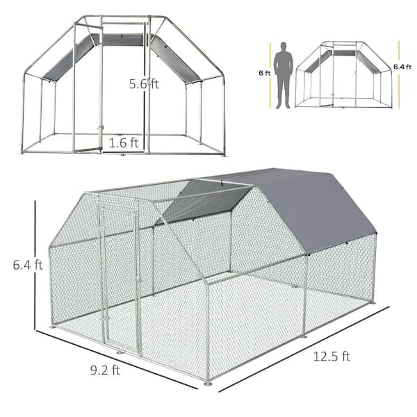 78 in. Large Chicken Coop Metal Run with Waterproof and Anti-UV Cover, Flat Shaped Walk-in Garden Fence Cage Hen House