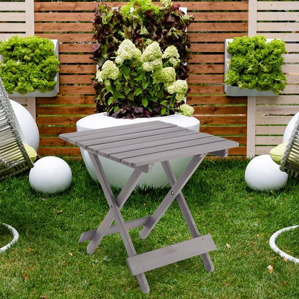 Folding Square Table Patio Outdoor Solid Wood Table for Backyard, Balcony, Portable Design Space-Saving, Gray