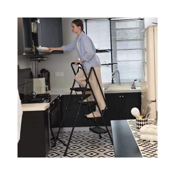 Four Step Ladder, Lightweight Folding 4-Step Stool, Wide Anti Slip Pedal and Safety Handle, Multi-purpose Step Ladder