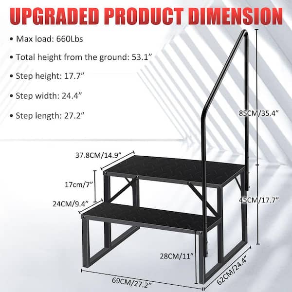 Hot Tub Steps Outdoor, 2 RV Steps with Handrail, Heavy Duty Truck Camper Steps Ladders for Above Ground Pool