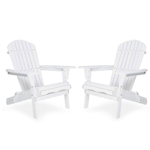 Outdoor White Folding Wood Lounge Patio Chair, Adirondack Chair (Set of 2) Solid Cedar Wood Lounge Patio Chair