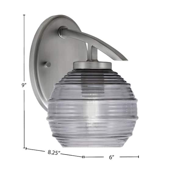 Siena 1-Light Graphite Downlight Wall Sconce with Smoke Ribbed Glass Shade