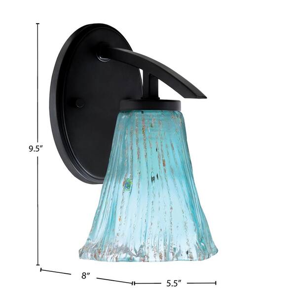 Siena 1-Light Matte Black Downlight Wall Sconce with Italian Ice Glass Shade