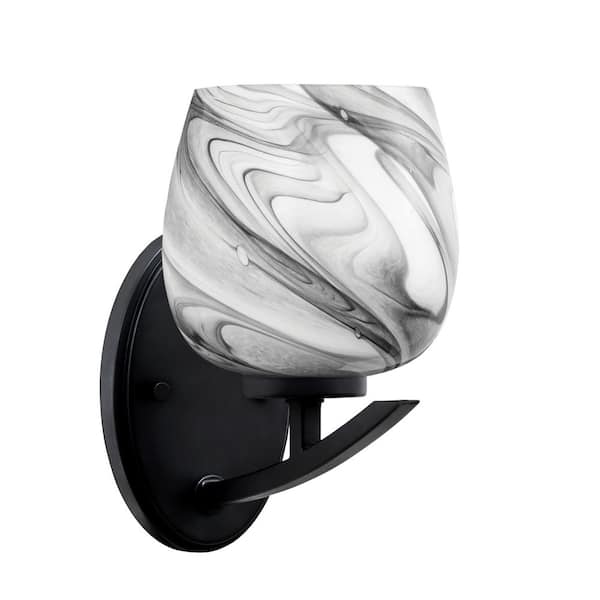 Siena 1-Light Matte Black Downlight Wall Sconce with Onyx Swirl Glass Shade