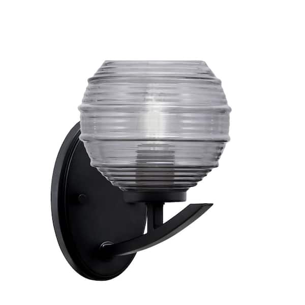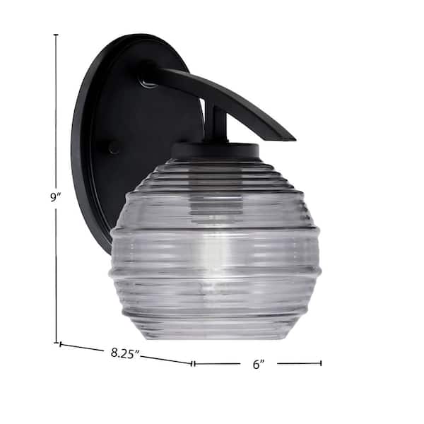 Siena 1-Light Matte Black Downlight Wall Sconce with Smoke Ribbed Glass Shade