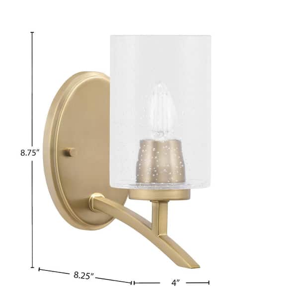 Siena 1-Light New Age Brass Uplight Wall Sconce with Clear Bubble Glass Shades