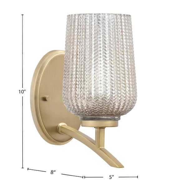 Siena 1-Light New Age Brass Uplight Wall Sconce with Silver Textured Glass Shades