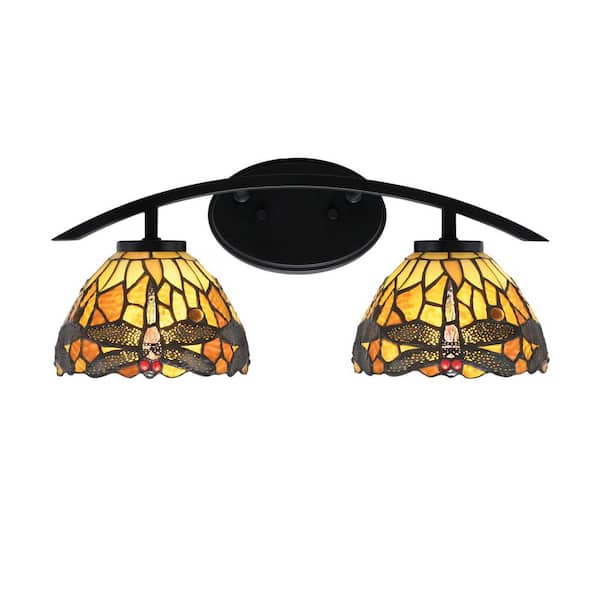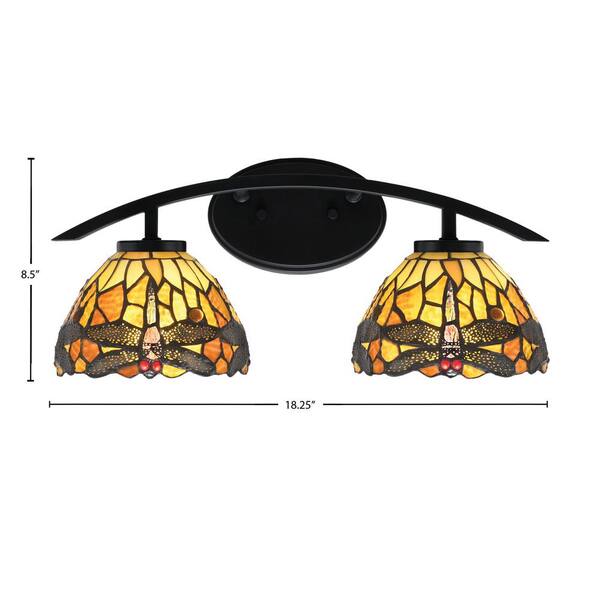 Siena 18.25 in. 2-Light Vanity Light Matte Black with Amber Dragonfly Art Glass Shades