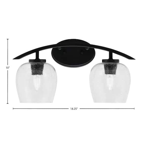 Siena 18.25 in. 2-Light Vanity Light Matte Black with Clear Bubble Glass Shades
