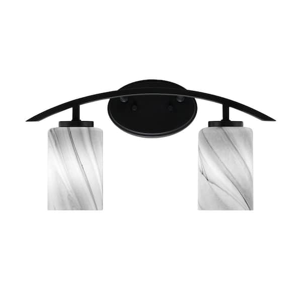 Siena 18.25 in. 2-Light Vanity Light Matte Black with Onyx Swirl Glass Shades