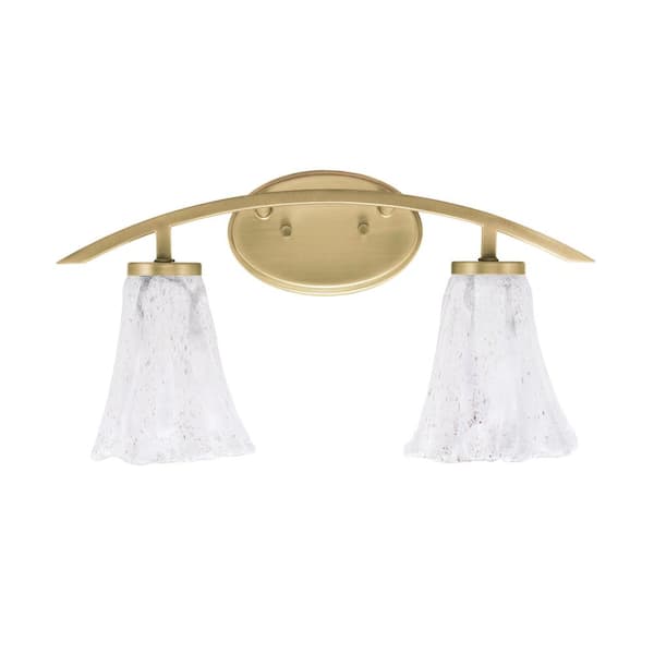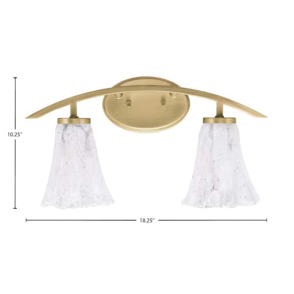 Siena 18.25 in. 2-Light Vanity Light New Age Brass with 7 in. Fluted Italian Ice Glass Shades, No Bulbs Included