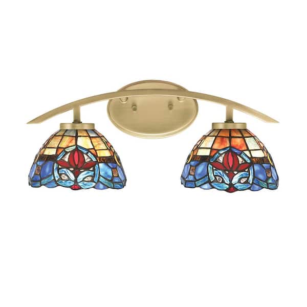 Siena 18.25 in. 2-Light Vanity Light New Age Brass with 7 in. Sierra Art Glass Shades, No Bulbs Included